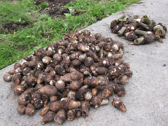 こちらが自然畑のサトイモです。連作です。昨年より更に小さいです。